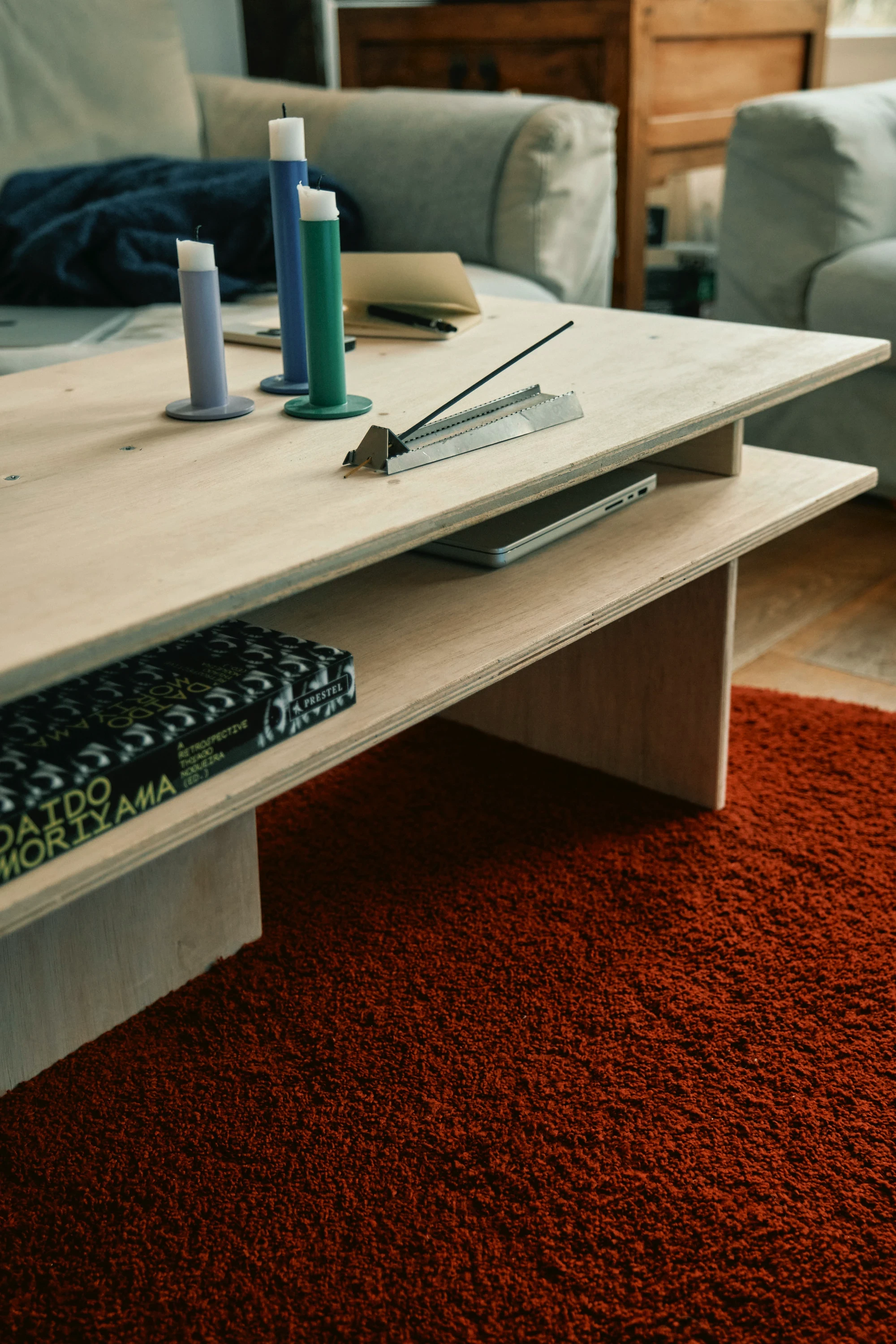 This coffee table emerged from a shared desire to deepen our woodworking skills and design a piece that responded directly to how we live and work at home. Together with my friend and housemate, Atacan Tutulmazay, we set out to create a table shaped by our everyday needs; one that would support sketching sessions, quick critiques, and a workspace that could transition easily back into a living room.